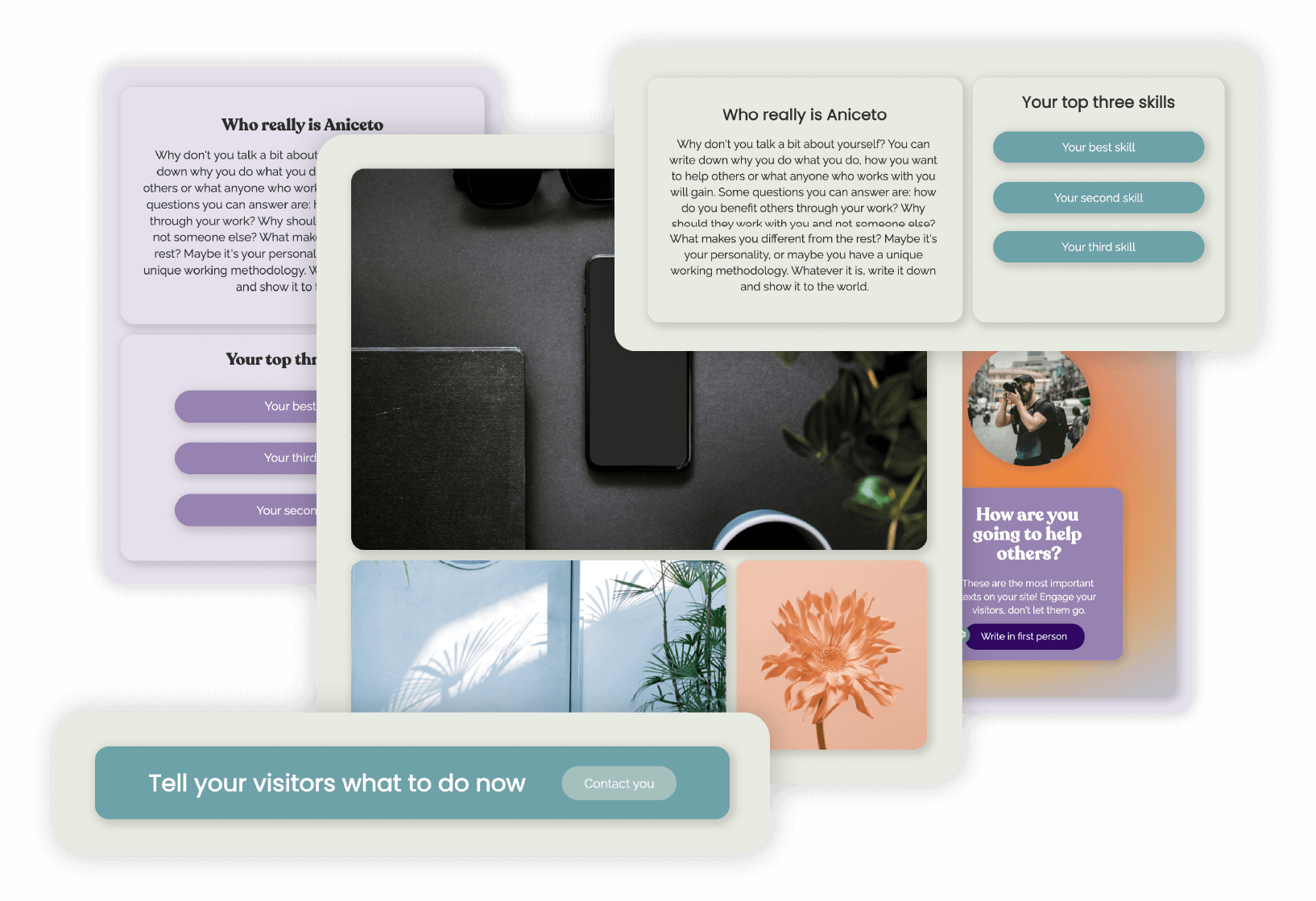 Think on what do you want to share, choose the blocks, customize the color, font and personalize the whole page as much as you want.