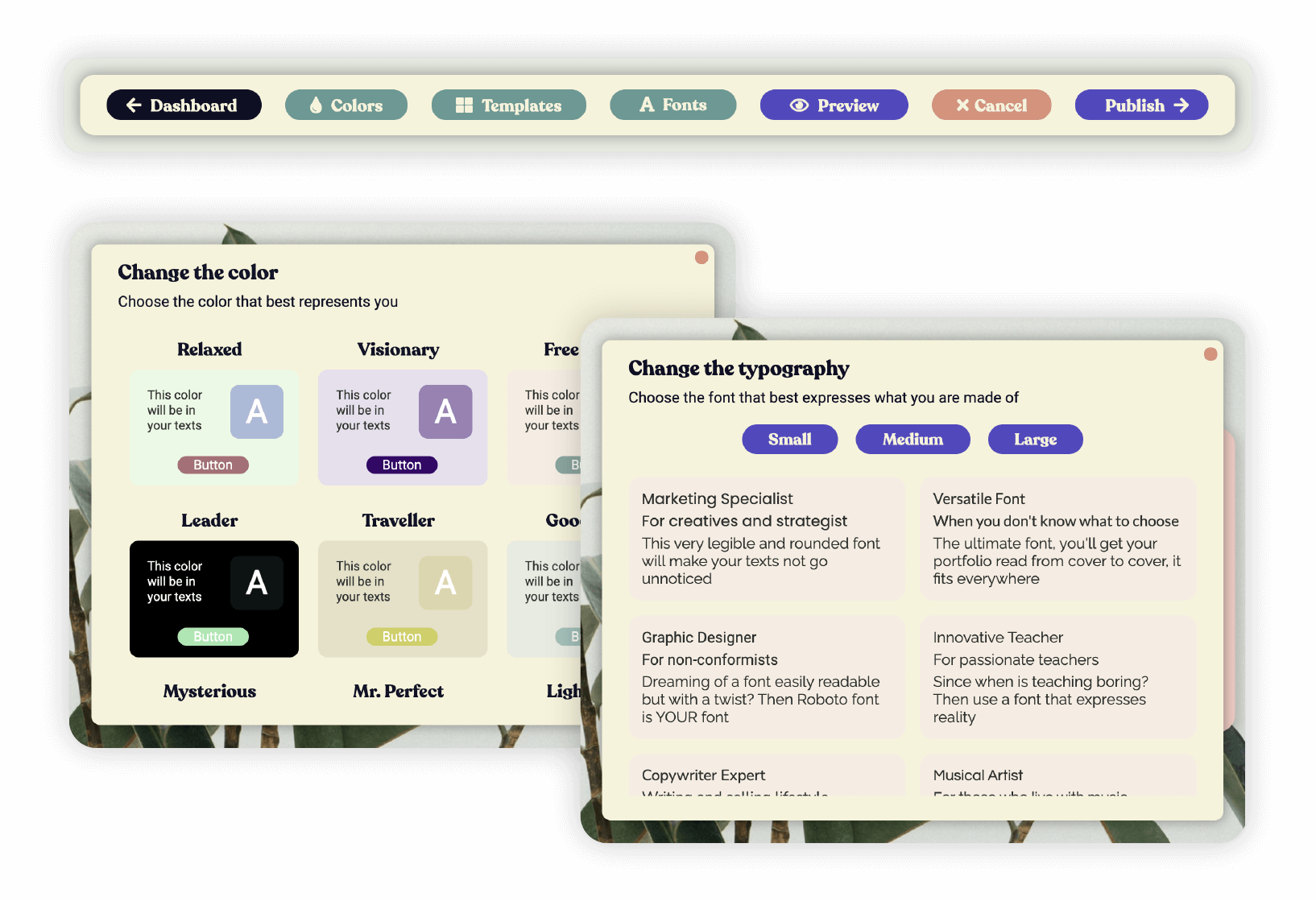 When you create your account on identid.me, the first thing you will have to do is choosing the template you like the most.