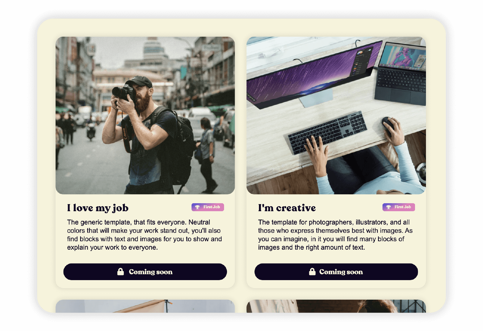 Minimalist-designed templates and blocks for any kind of creative professionals. Make your portfolio fits you.